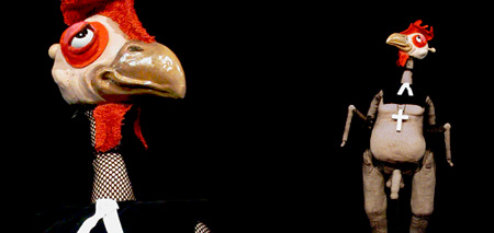 ◄vorheriges.....nächstes► (ähnliche Puppen aus derselben Produktion) Pfarrerhuhn "Das gerupfte Huhn ", Theater Vuurwals, Niederlande Vollgelenkige Puppen mit abnehmbaren Köpfen Höhe ca. 120 cm ZURÜCK ZUR ÜBERSICHT