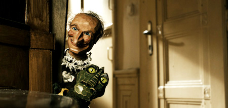◄vorheriges.....nächstes► (ähnliche Puppen aus derselben Produktion) Krokodil und Kasper (Foto Copyright Dreamer Joint Venture & Universum Film) "Geld her oder Autschn " Kinofilm, Rene Marik Handpuppe Höhe ca.40cm ZURÜCK ZUR ÜBERSICHT